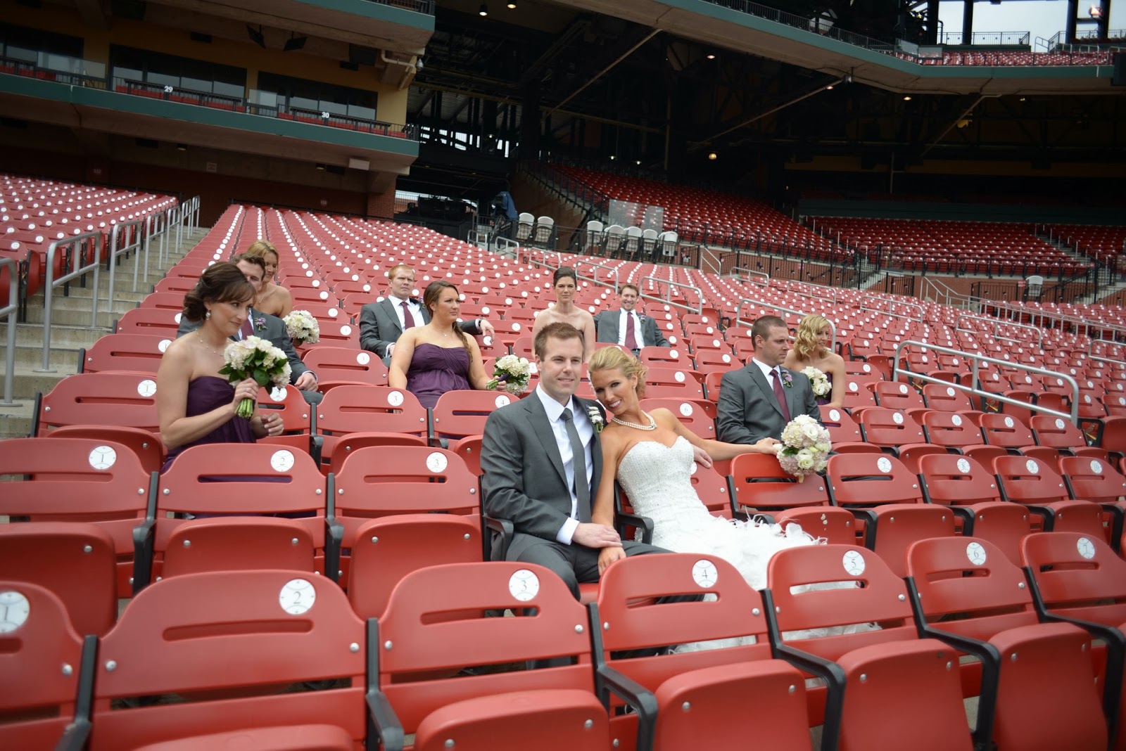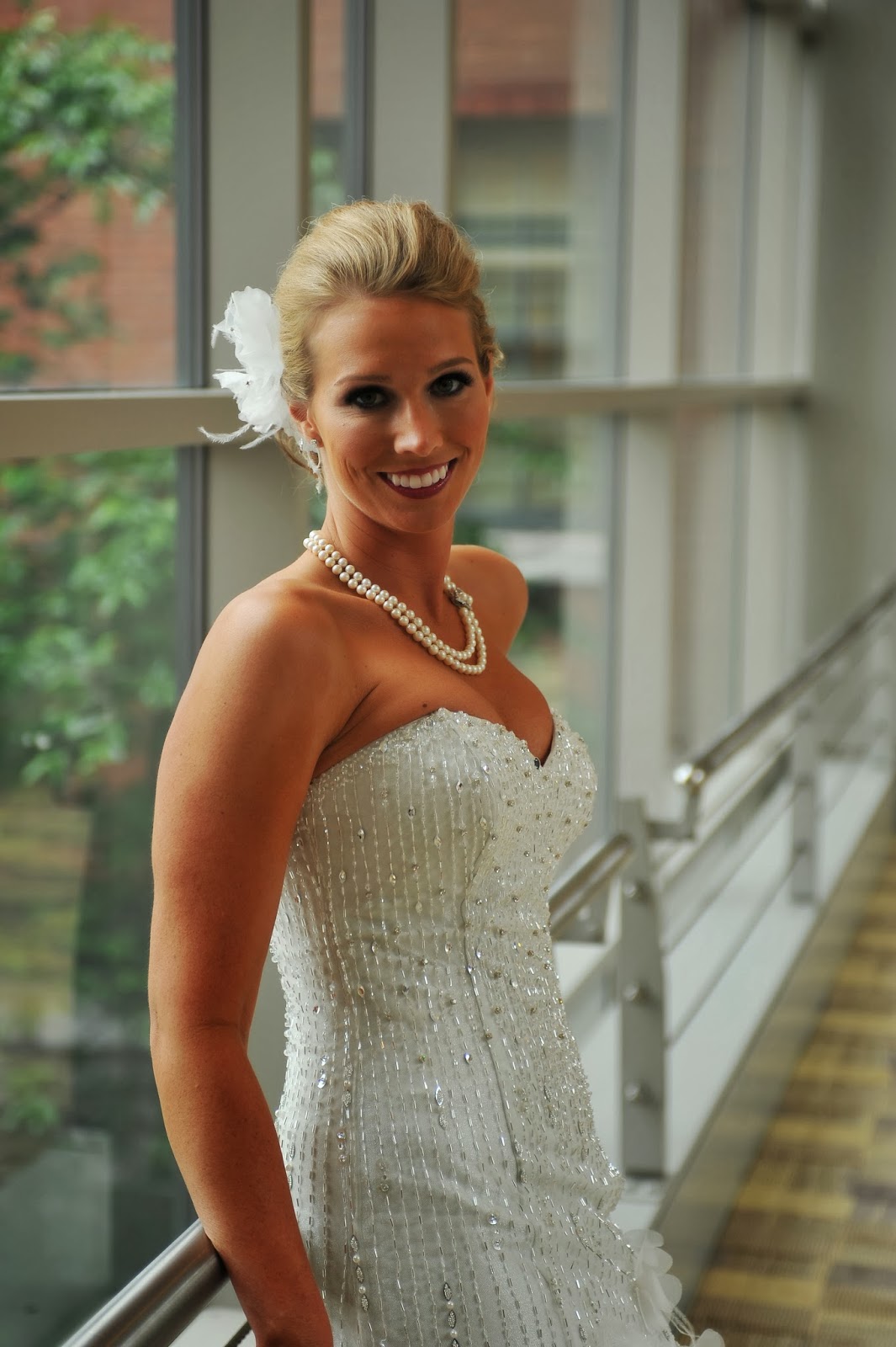 Liz is a college friend that made a beautiful bride in 2013! She flew in from Atlanta to St. Louis, to marry her now-husband, Brian. She and her bridesmaids made a beautiful wedding party and they were a lot of fun too! I love these photos from her photographer George Street Photo and Video. We chose a dark smokey purple eye and bright berry lips for Liz. Overall, she wanted to look elegant, yet sexy. For her hair, she wanted a sleek, elegant look that was pulled back with volume so she didn’t have to worry about it all day. I think we acheived her look!